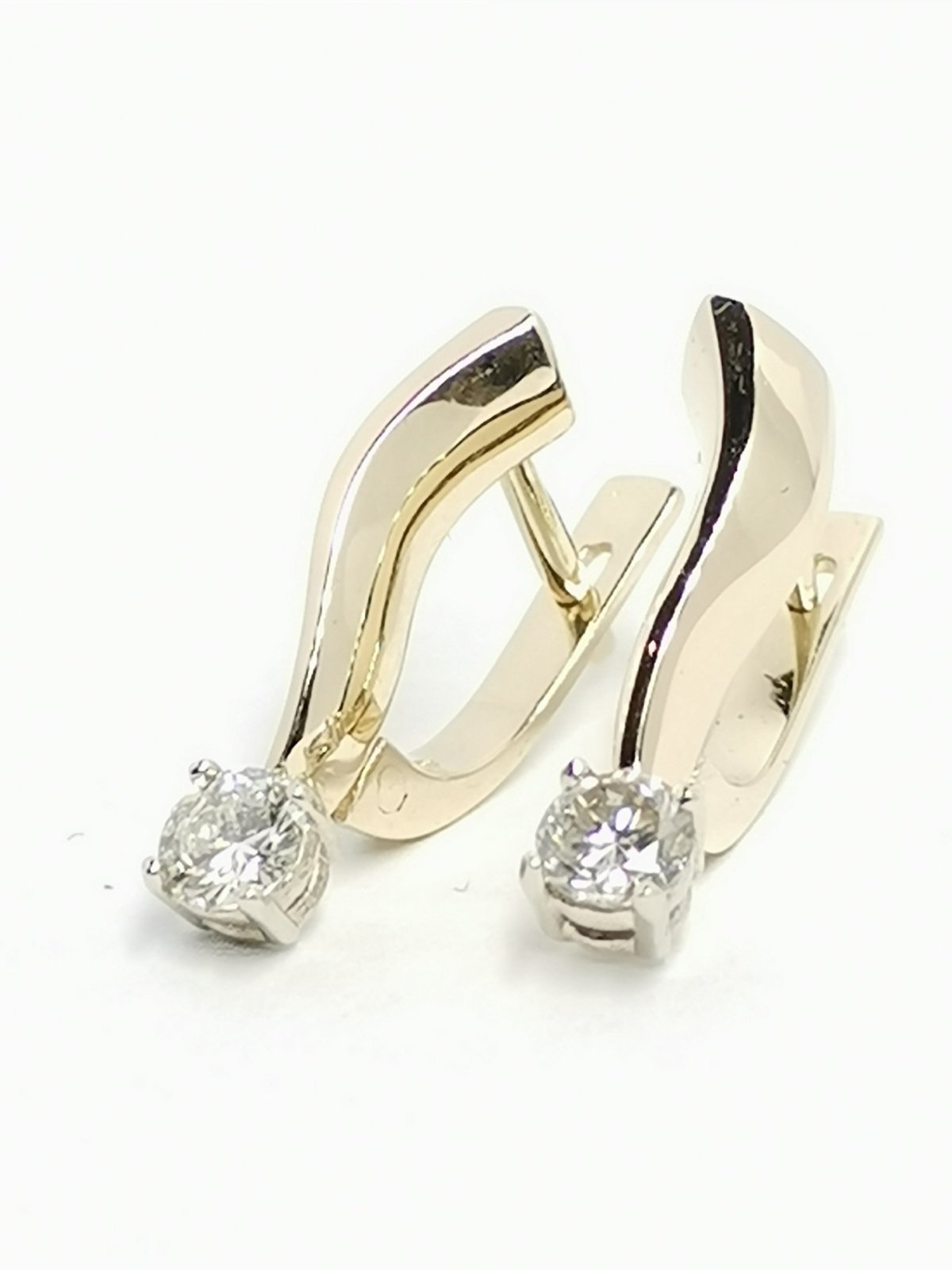Aukso spalva – gelsva. Aukso praba – 585. Svoris – 2,91gr. Brangakmeniai – briliantai 0,36 ct. W – Si.