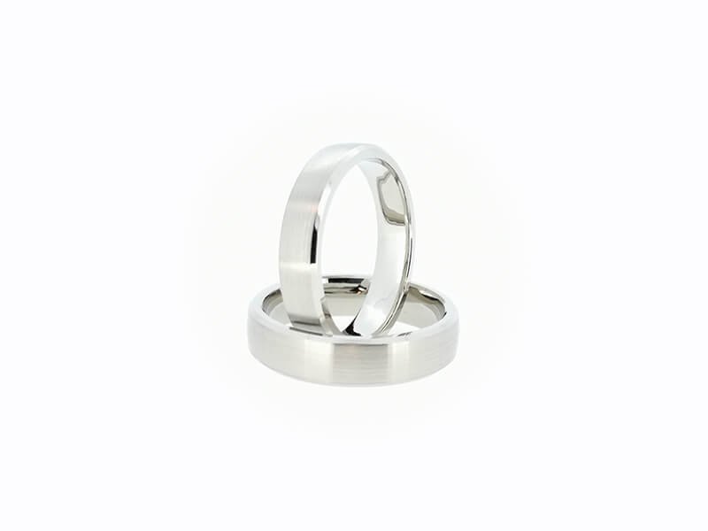 Žiedai gaminami tik pagal užsakymą. Pagaminimo terminas – 2 savaitės. Užsakymo metu galimas pasirinkimas: aukso praba 585, 750; aukso spalva- rausvas, gelsvas, baltas. Užsakymui galite pateikti savo atsineštą auksą. Pavyzdyje – balto 585 prabos aukso vestuviniai žiedai. Matinis paviršius. Žiedų plotis – 4,5 – 5mm. Žiedų svoris – 12,5gr.