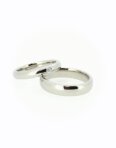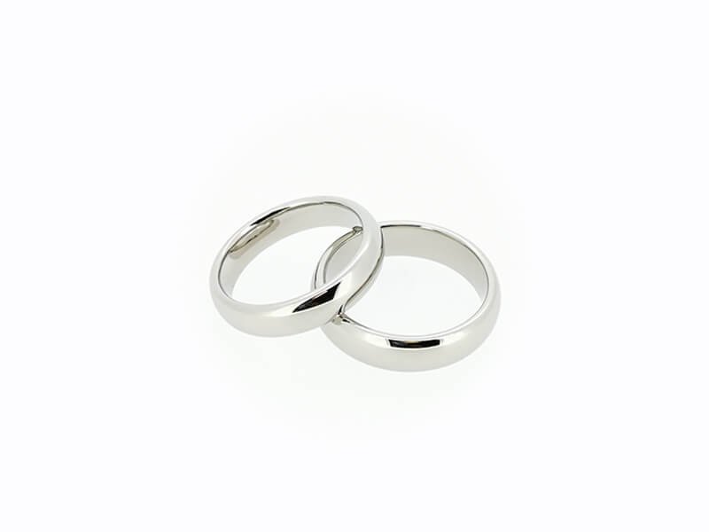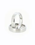 Pavyzdyje – balto 585 prabos blizgaus aukso vestuviniai žiedai. Gaubto profilio su gaubimu viduje (comfort-fit). Žiedų plotis – 4,5 -5 mm. Žiedų svoris 11,4gr.