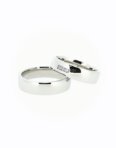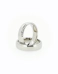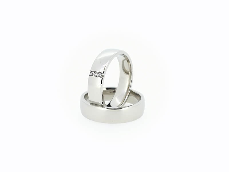 Pavyzdyje – balto blizgaus aukso žiedai su briliantais 0,045ct. RW VS. Lengvai gaubto profilio su gaubimu (confort-fit) viduje. Žiedų plotis 6mm. Žiedų svoris – 14,5gr.
