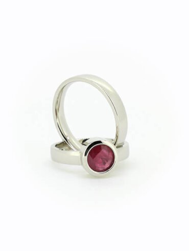 Pavyzdyje  – žiedai balto 585 prabos aukso 10,5gr. Matinis paviršius. Moteriškas žiedas su briliantais 0,81ct. RW VS SI.