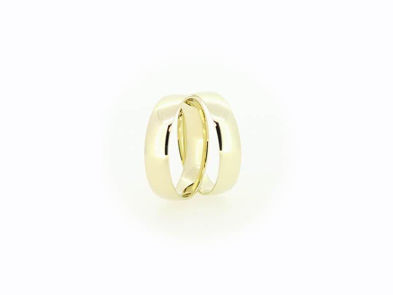 Pavyzdyje – gelsvo blizgaus 585 prabos aukso vestuviniai žiedai.  Žiedų plotis 6,5 mm.  Žiedų svoris – 15,5gr.