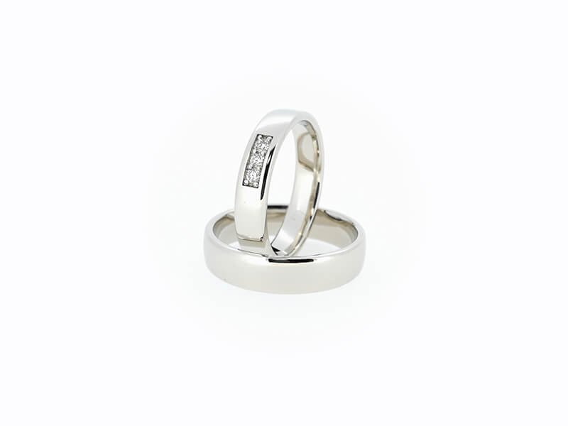 Pavyzdyje – balto 585 prabos aukso vestuviniai žiedai su briliantais 0,09ct. RW VS. Žiedų plotis – 5-6mm. Žiedų svoris- 13,5gr.