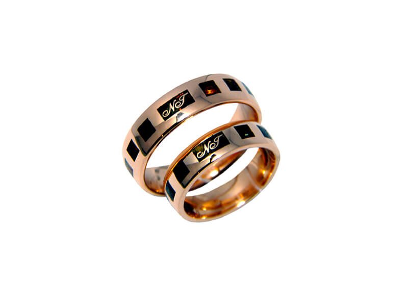 Žiedai gaminami tik pagal užsakymą. Pagaminimo terminas – 4-5 savaitės. Užsakymo metu galimas pasirinkimas: aukso praba 585, 750; aukso spalva- balta, rausva, gelsva; žiedų pločiai. Žiedai prabuojami ir sertifikuojami. Pavyzdyje – 585 prabos rausvo aukso vestuviniai žiedai su gintarais. Žiedų pločiai – 5mm. Žiedų svoris – 13gr. Kaina 1200Eur.