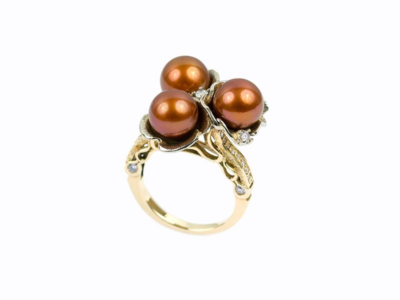 Tik pagal užsakymą.  Žiedas geltono 585 prabos aukso 9,58gr. Perlai 13,5ct. Briliantai 0,87ct. RW-W VS-SI.  Užsakymo metu galimas kitos aukso spalvos, prabos ar kitų brangakmenių pasirinkimas. Gaminys prabuojamas ir sertifikuojamas. Pagaminimo terminas – iki 4 savaičių.