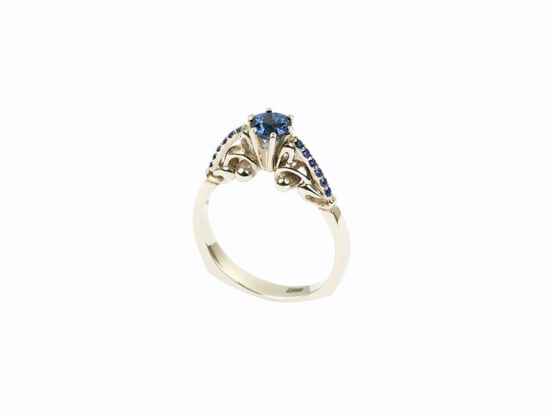 Tik pagal užsakymą. Žiedas balto 585 prabos aukso 3,17gr. Safyrai 0,66ct. Užsakant gaminį galimas aukso spalvos, aukso prabos ar kito brangakmenio pasirinkimas. Gaminys prabuojamas ir sertifikuojamas. Pagaminimo terminas – 2-3 savaitės