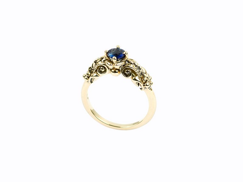 Tik pagal užsakymą. Žiedas geltono 585 prabos aukso 5,07gr. Safyras 0,5ct. Užsakymo metu galimas aukso prabos, aukso spalvos ar kito brangakmenio pasirinkimas. Gaminys sertifikuojamas ir prabuojamas. Pagaminimo terminas – 2-3 savaitės.